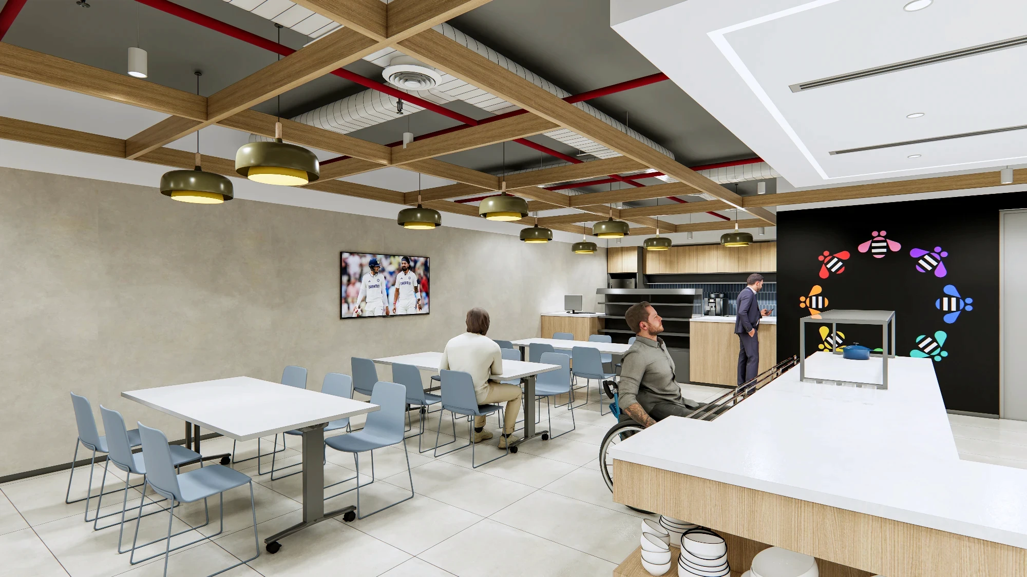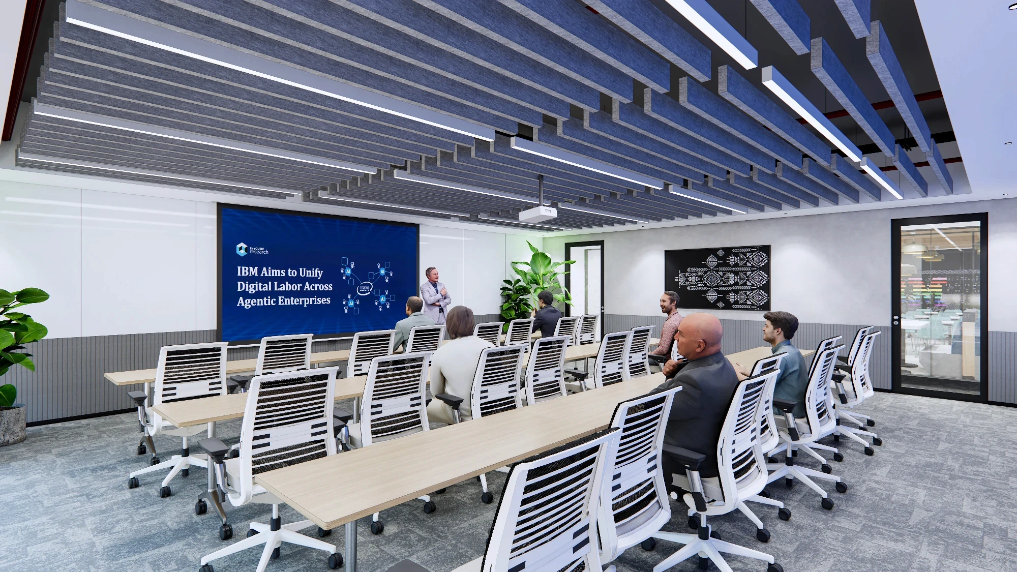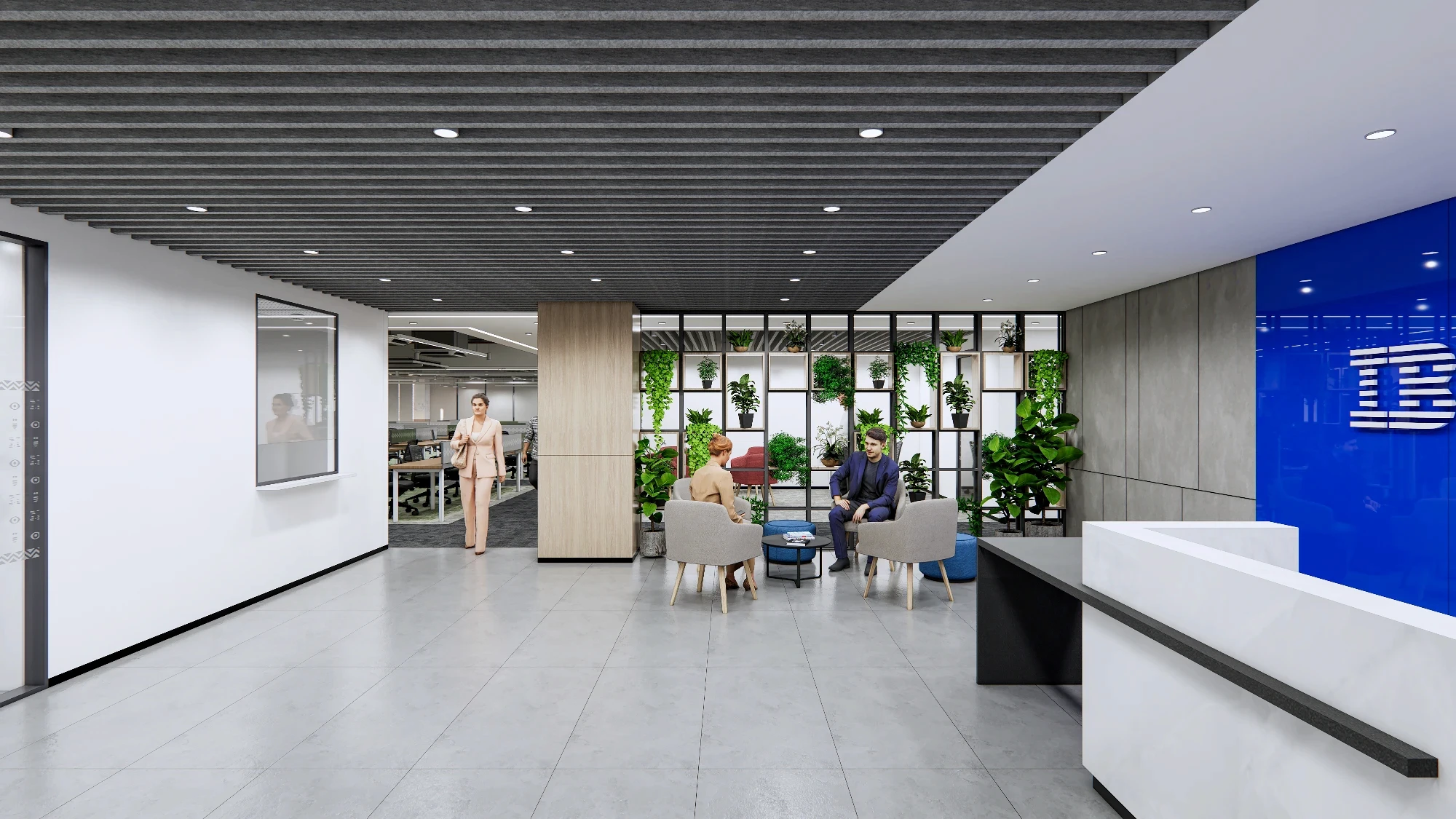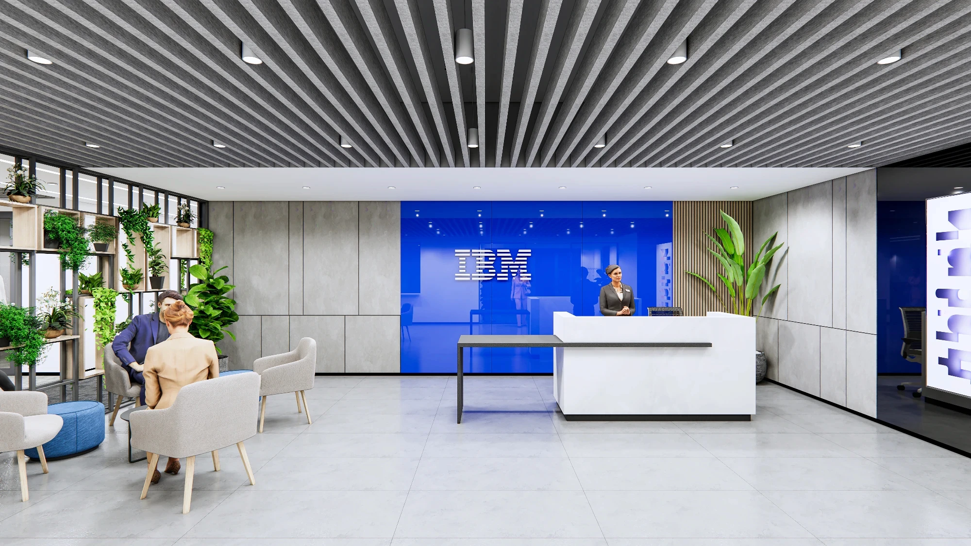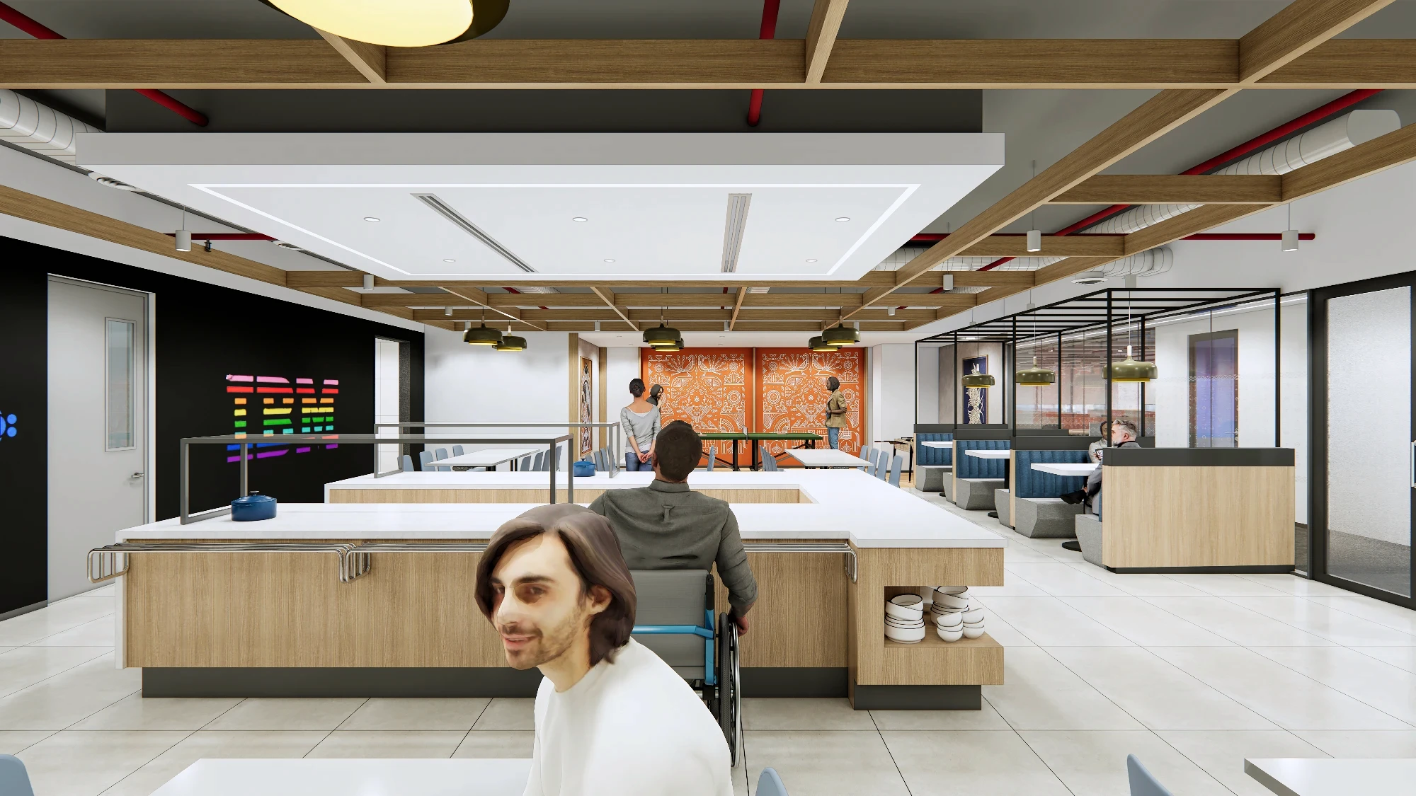 A contemporary, collaboration-friendly office that respects IBM’s legacy of innovation and precision. A understated, purposeful design with refined materials, structured layouts, and clean detailing that feels future-ready. Subtle IBM cues through color, graphics, and space planning keep the identity without being overt